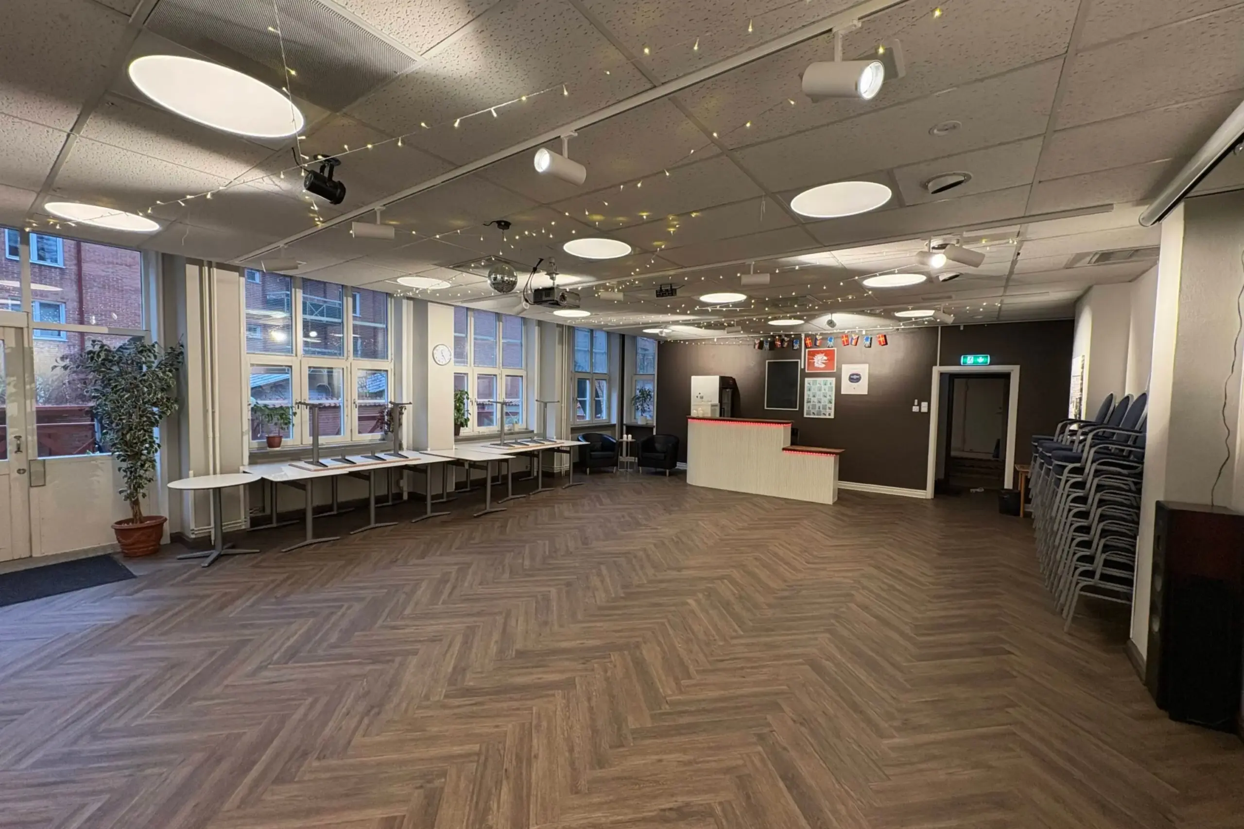 Lokalen är utrustad med moderna faciliteter som passar både vardagliga möten och festliga tillfällen. En stereoanläggning, storbilds-TV samt discolampor med laserlampor och UV-lampa finns tillgängliga för att skapa rätt stämning oavsett typ av arrangemang.